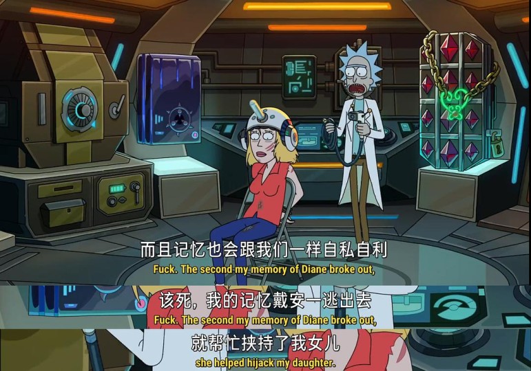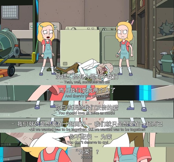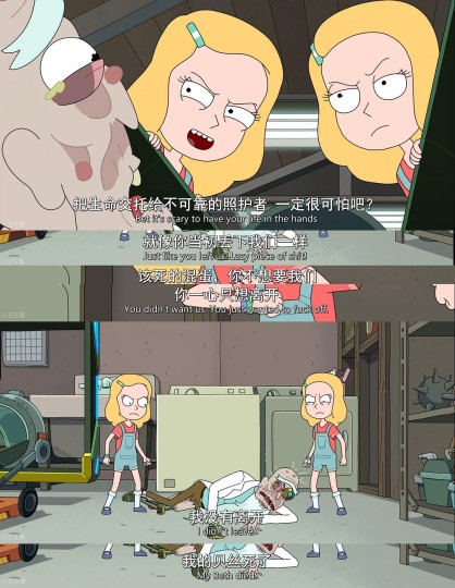 很感慨的是这一段,两个小 Beth 设计利用主角 Rick 对家人的在意,把主角 Rick 调到了机器能调的极限(360岁)。只有到了这个时候,Beth 和 Rick 才真的说出了自己内心的情感和想法。