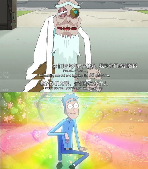 当然可能会有人觉得角色从矛盾挣扎的状态脱离出来就不 Rick and Morty 了,但我认为实际上这一点就是整个系列的核心:平行宇宙一切都有可能,宇宙的一切都是无意义的,没有人有目的和意义地存在。 Nobody exists on purpose, nobody belongs anywhere, everybody's gonna die, come watch TV. 来看电视吧,就感受当下,感受身边陪伴的情感。