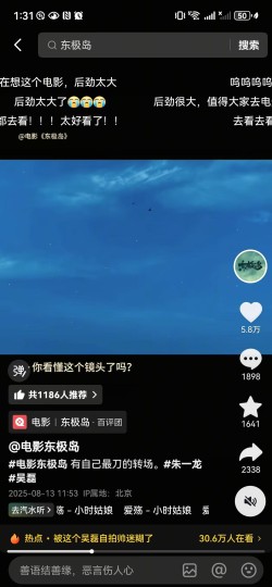 【问题⑥】经过评论区提醒补充,关于阿荡死后的一段剧情,我印象中先是阿赑带着阿荡游回来——拖上岸——回到家,在回家之后两个人躺在床上的戏份里,本来应该是朱一龙非常连贯的独角戏吧,但是似乎穿插了(1)阿赑背着没穿衣服的阿荡上岸,(2)阿赑背着穿了衣服的阿荡站在岸边,(3)阿赑独自站在岸边,的三组镜头。(我关于这里印象不太深了,可能说得有误,也可能把官抖的一些记忆插进来了,欢迎指正。)关于(1)阿赑背着没穿衣服的阿荡回家,这部分为什么要插在阿赑躺床上的回忆里,而不是正常衔接在他把阿荡拖上岸的镜头之后,不理解,这个情节也不是什么能够助推情绪的,没必要滞后剪辑。而关于(2)(3),官抖还专门放了个小视频出来问你看懂了吗……我第一次确实没看懂,因为即便是在IMAX大屏上,经过技术调整的“夜戏”也还是太暗了,根本分不太清楚阿荡到底有没有穿衣服,又都是阿赑情绪里回忆的插叙,与前一个(1)直接混淆了,搞得我不明白为什么同样的戏份插两次。后来明白了,第二次是穿衣服的,暗示的是海葬,但我又不懂了,这是个什么很难拍摄的情节吗?为什么要让观众猜测?为什么不能直接一两个镜头交代一下拍出来?既然导演已经把镜头对准吴磊饰演的“尸体”那么久,既然前面不乏各种血腥奇观,这个把弟弟和一兜子小玩具放海里有什么不能拍清楚的,为什么永远是这样该拍的不拍,情节让人看不明白;不该拍的拍一堆,节奏上拖拖拉拉。
