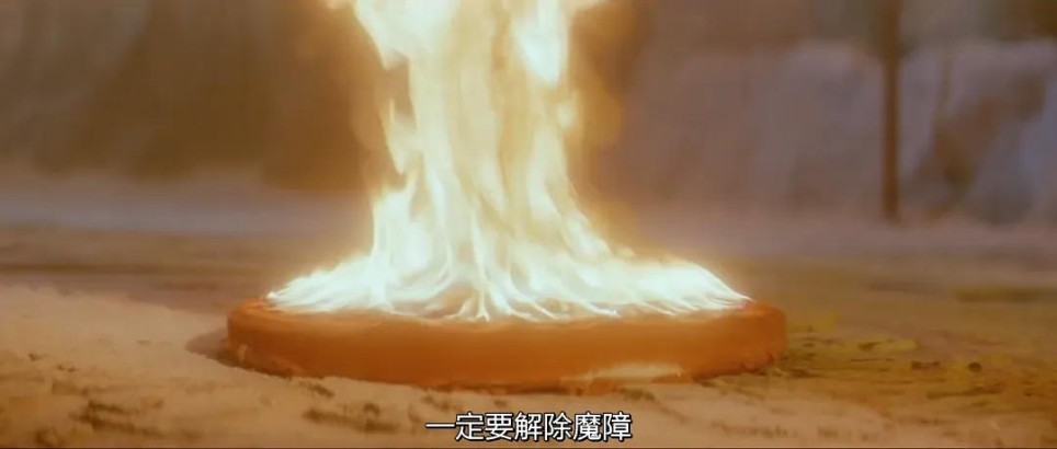 法海的“没忍住”相当于阿难输给了摩登伽女,这叫什么事?于是输了的法海又“嗔”了,他扬起拂尘、气急败坏地攻击小青(注意拂尘打到水面,又是火光冲天)。