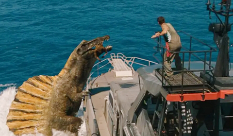 往往这类怪兽题材电影,都会无限放大主角光环,悲催的是片中的配角,他们往往会成为巨兽嘴中的食物,所以该片中“寡姐”一行冒险队伍先后就有几人惨死于恐龙口中,这种设定也是欧美怪兽电影几十年来屡试不爽的老套手法。