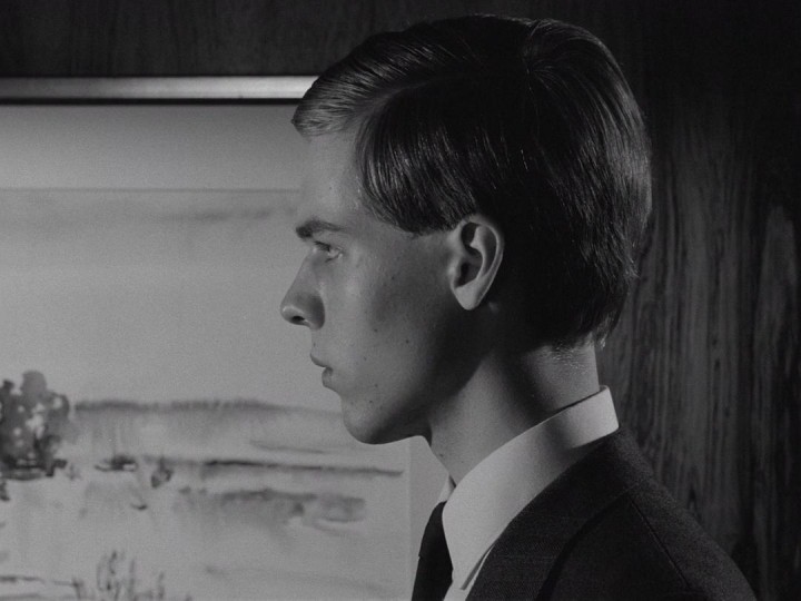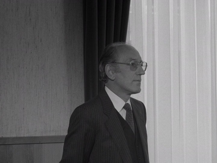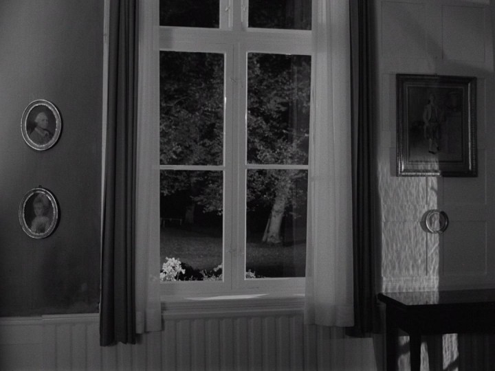 只有当人物是持续的,我们才能再次看见他/她,所以摄影机需要为之停留。本片场面的完整性令人想起小津安二郎,这些作者都让不同的时空得以共存。于伊耶-斯特劳布隐去了大量的角色和桥段,可角色一旦出场,就不会轻易翻篇。在第一段,船舱门口站着一位叫莉娜的厨娘,她是关键的证人,卡尔和司炉走上阶梯遇见了她,待他们走后,莉娜又抽起了烟,恢复了被造访前的状态。在乡村别墅中,一位老仆带卡尔穿过长廊,走下楼梯,为他打开客厅的门;当卡尔进门后,老头还要继续做完手上的事,开始等待。 姿势即态度。哪怕是一颗绝不转向的后脑勺,也能超越情节或对话,保持独立形态。空间亦如此,每次表演发生前或离开后,一片独立于虚构的空剧场在静止中运动,刻画着自身的美术。在乡村别墅的沙发上,格林先生听着画外的克拉拉走远,开始舒展身体;在小房间里,卡尔正倚着窗户看向外面的景象,渐渐地,克拉拉的脚步声响起。卡尔被拉走,但景框仍然维持着,这面墙本身就是漂亮的整体,窗户两边挂着不同的画像,两层窗帘拉开,窗棱外有花丛和一株倾斜的树,它们不完全服务于故事,只是物质的整理和陈列。电影与文学各有各的现实主义,于是,于伊耶-斯特劳布以那些唯一庄严的意象,代替了华丽的还原,乡村别墅里的玻璃门变成了实在的木门,至于西方饭店的办公区域,则抽象为极端的黑与白。