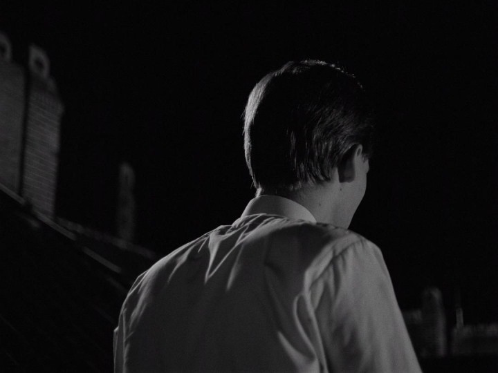 对原著的精简,还突出了卡尔与其他弱势者的平等,每当他离开一个悲惨的形象,某种和前者相似的处境便找上了他——司炉、特蕾莎,他将重新成为他们的兄弟。西方饭店里递增的听证:卡尔先是躺在床上,听特蕾莎自述;接着,自述来到窗前,他已穿上了电梯工的制服,二人面对着窗外的白光,特蕾莎回忆起母亲的死亡;随之,下个场景,醉酒的鲁滨逊已出现在电梯前,“寻求”他的帮助,卡尔不得不为他离开岗位,因此遭解雇,一切只在两次电梯的升降之间。阶级关系即空间,失去话语权的人,总是被两边的对话者们挤压,甚至被隐形。但卡尔的重置,亦会给其他角色以不被遗忘的勇气。 卡夫卡庞杂的旅程变成了一条简洁的线路,《阶级关系》里大幅度减省的,反而是两个最不可思议的篇章——“避难”、“俄克拉荷马露天剧场”。在经历西方饭店的审判、真实街头的追逃之后,卡尔被带到布鲁娜妲的公寓。这间公寓本是茂密的马戏团,犹如住客们变形的躯体,但在这里它是一片遗迹。布鲁娜妲独占沙发,她完全拥有形象的权威,平衡着画外的窥视和声音轨迹,并虚构了更多“有的是”的空地。而那个没被砌平的阳台,既成了角色们的流放地,也是令其得见现实世界的半封闭景框,它将人和天空框在了一起,当游行响起时,远景里只有沉默的房屋和车路——就像《眼睛不要一直闭着也许或许有一天罗马会自己选择》中的罗马,环绕着高乃依演奏现场的,是几百年后的车流,电影必须面向这种坚固,又毅然背对着它——而一到夜里,所有当代的痕迹,马路和平屋、风和飞鸟,都被黑色遮盖,照出两个对话的舞台,卡尔背朝镜头,在空间的两极中冒险。